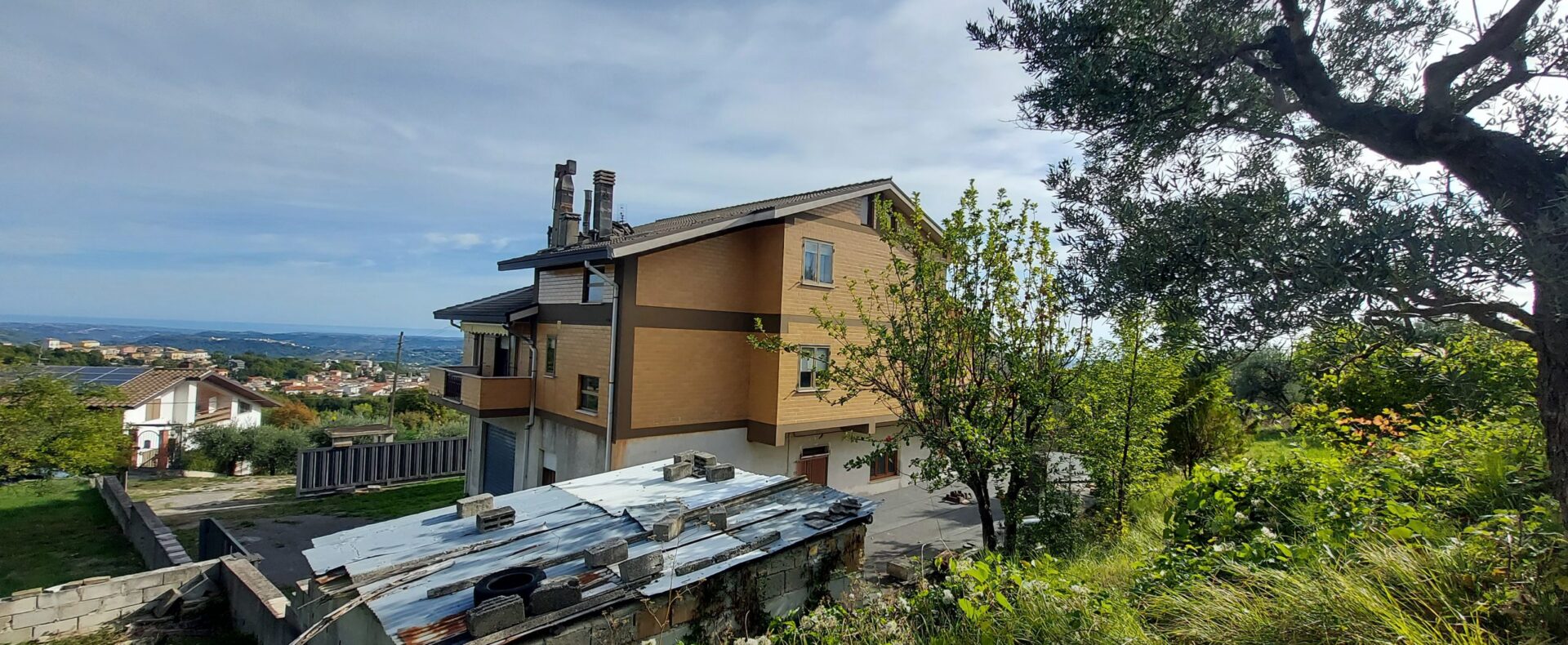 The reinforced concrete villa built with efficient thermal insulation systems overlooks a panoramic position that looks as far as the coast and is surrounded by greenery, with a front garden and a total of 3000 m2 of land with a water well
