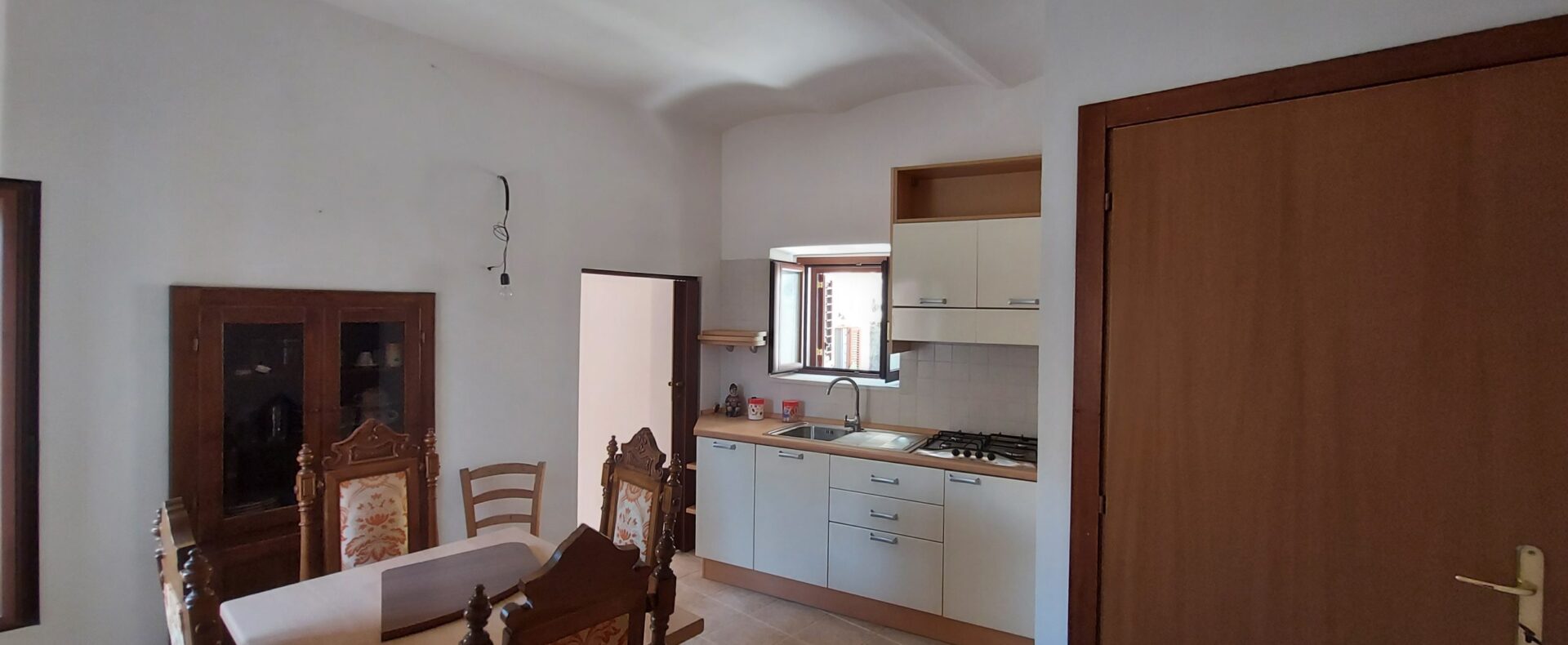Internally, the house also features characteristic elements in the rustic floor and vaulted ceiling