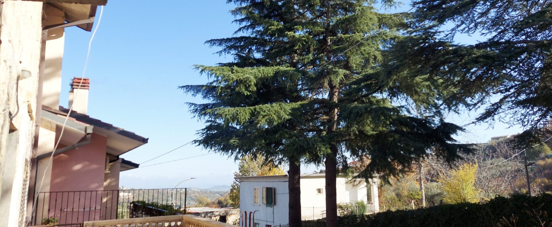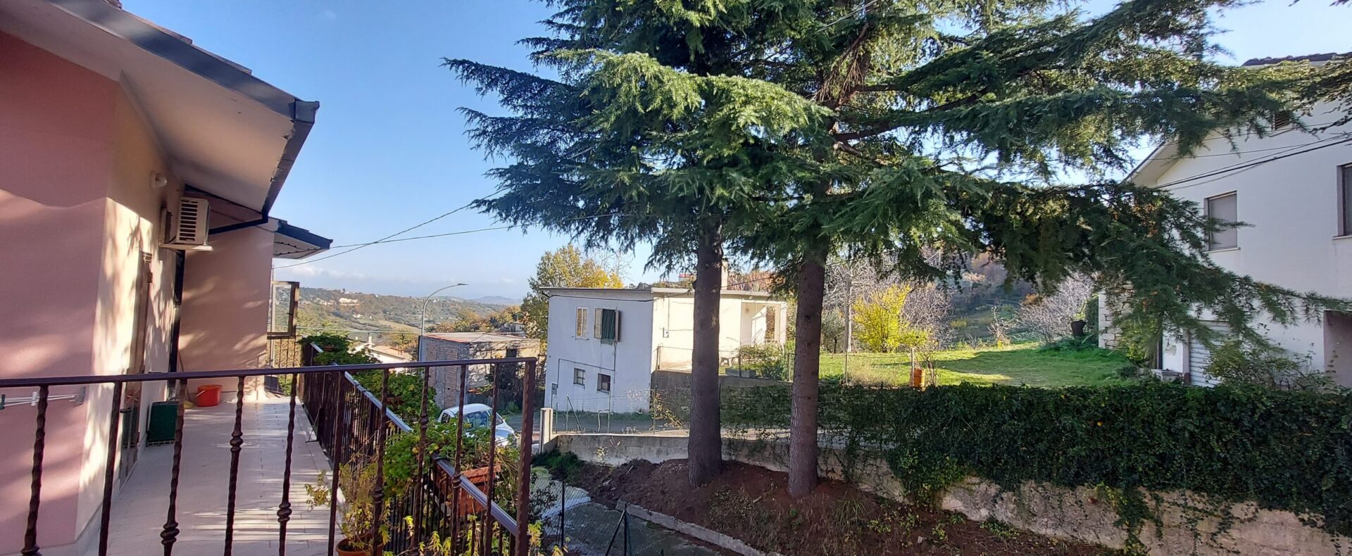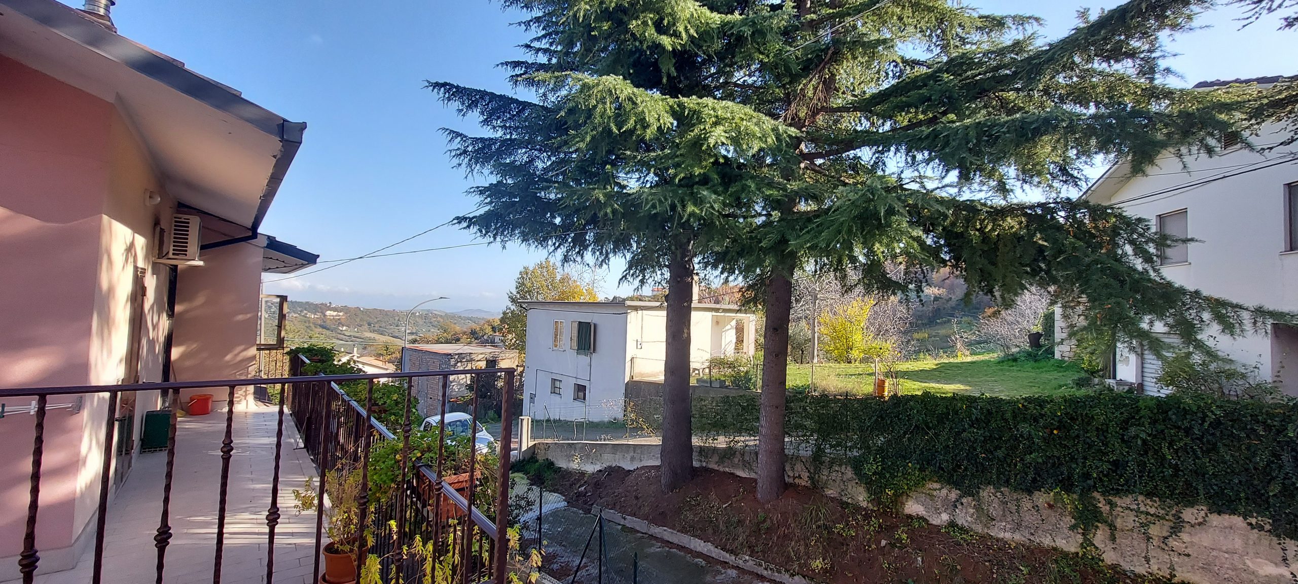 Outside there is a terrace, at the back there is a garden of about 500 sqm with beautiful fir trees and connected to the garden there is a large piece of land of about 3000 sqm